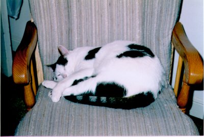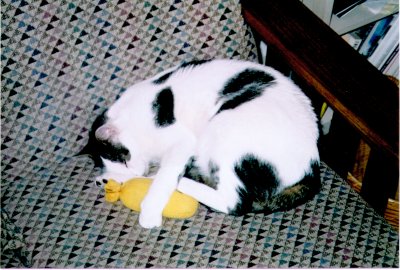 He was born on June 26, 1993 and died on June 18, 2005. Among his nicknames were: Scooter Pie, Insect, Dead Meat (the latter given to him by a former boyfriend with whom Scooter had a little run-in) When I moved to Bethany in 2002, Scooter became a country cat, and could go outside whenever he wanted. He became much mellower and Bill was no longer scared to death of him. Everyone else wisely remained scared to death of him.